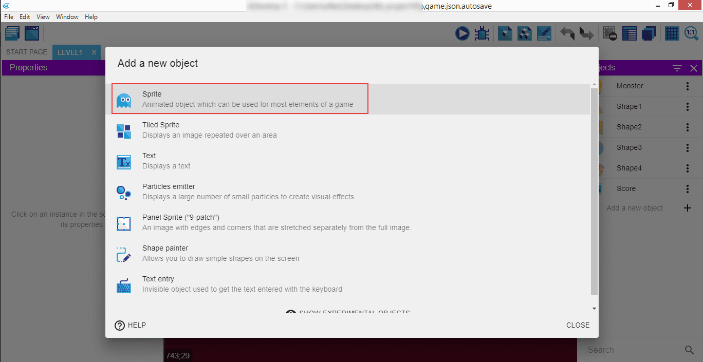 ...and select the "Sprite".